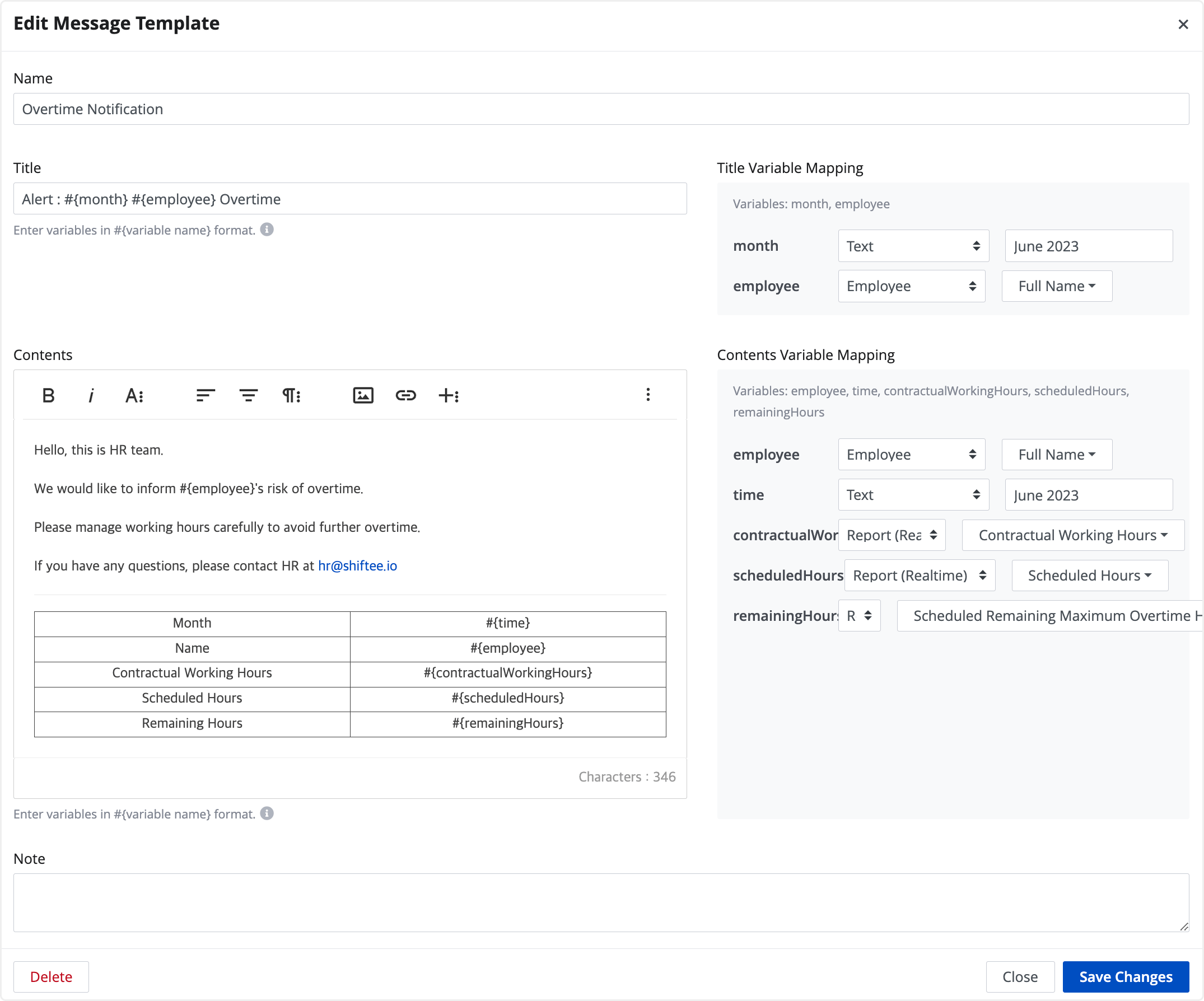 e.g.) #{MonthYear} #{Employee} Overtime Work Notification