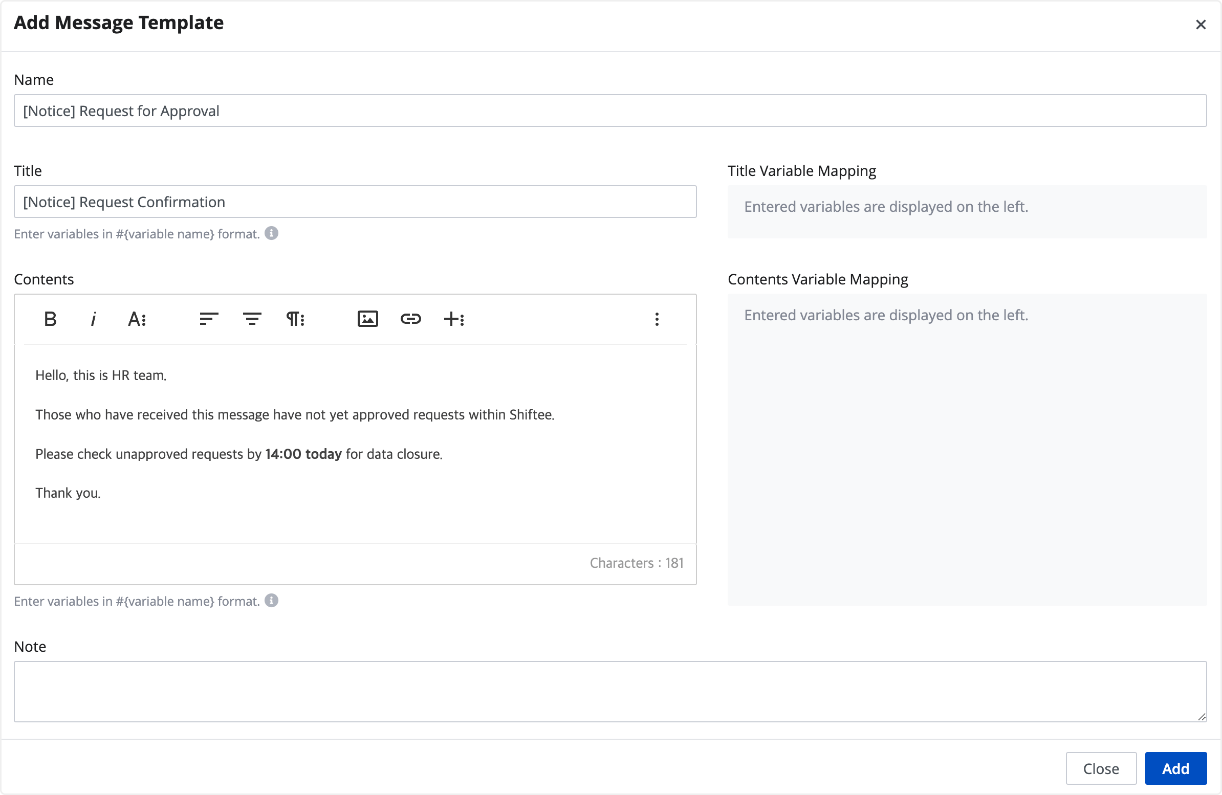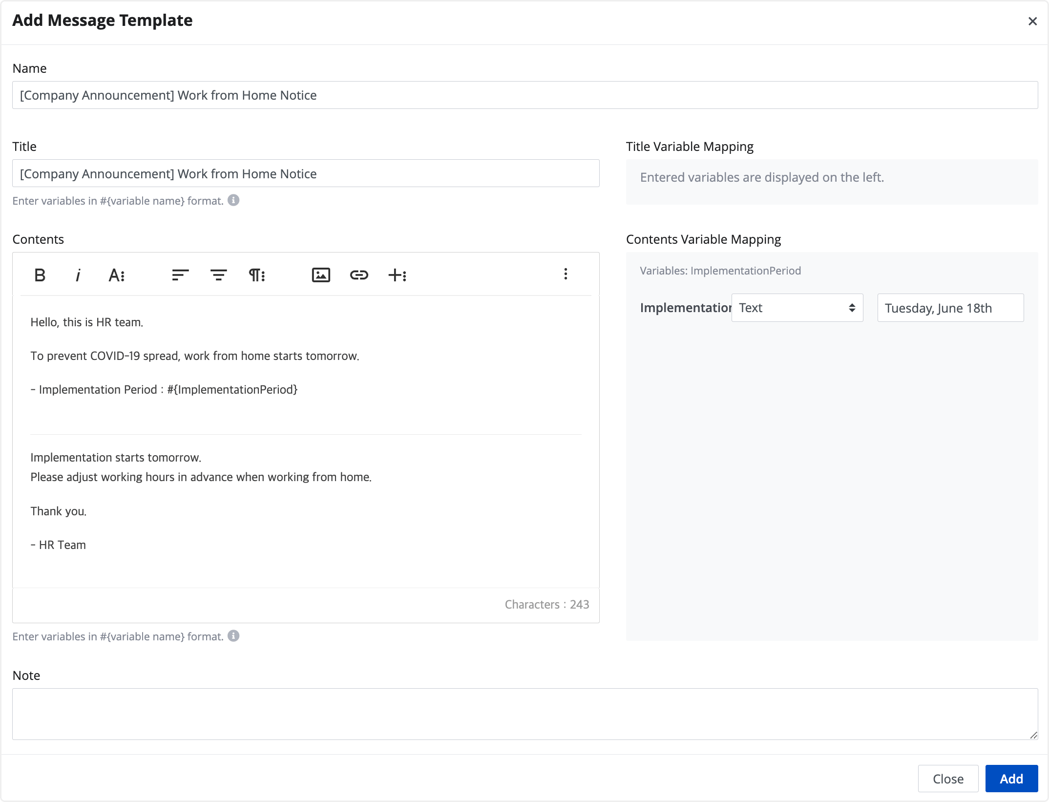 - Send various messages such as company announcements, notifications, and notices to employees.