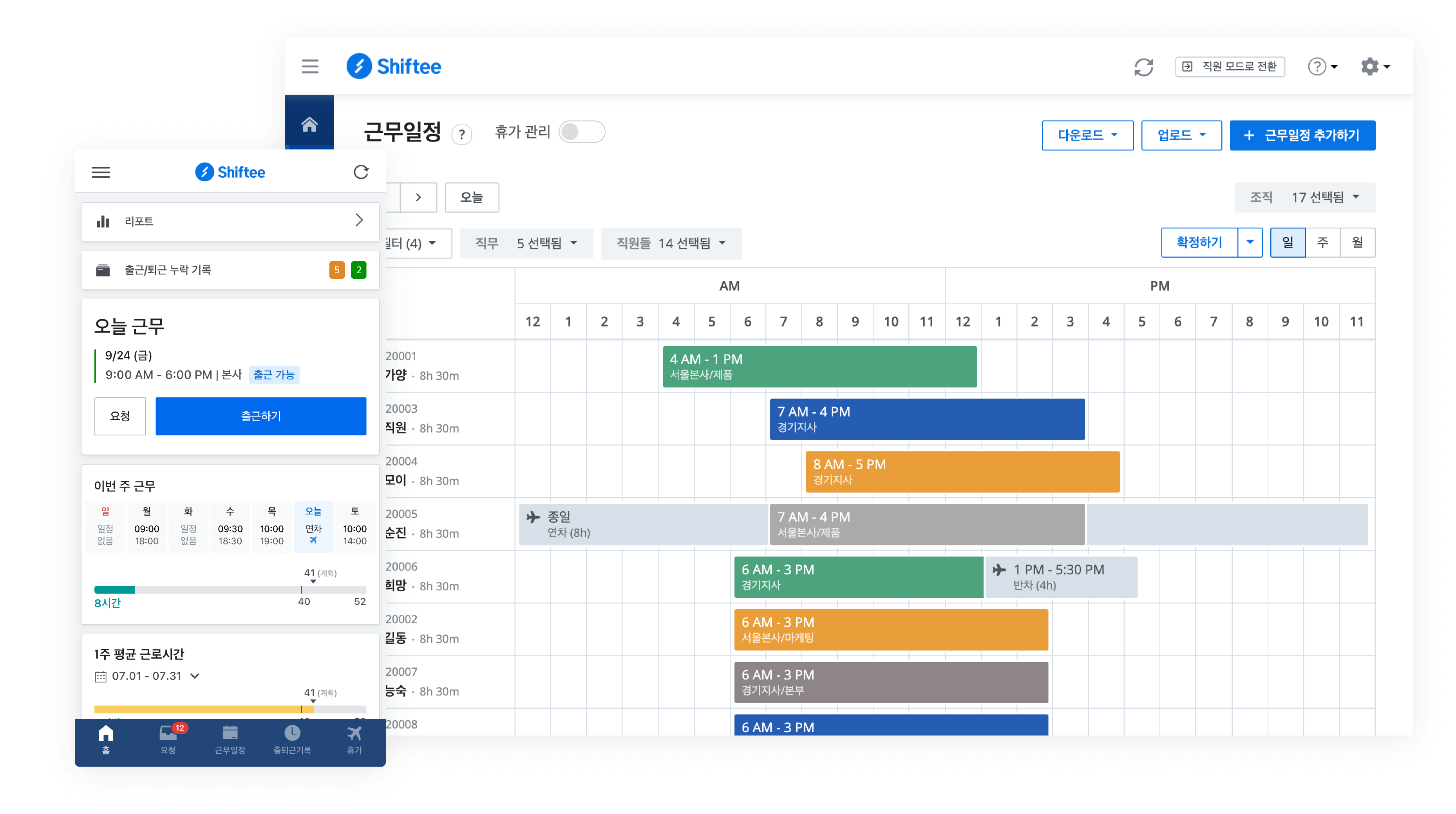 시간외근무 근태관리 자동화, 통합 인력관리 솔루션 시프티