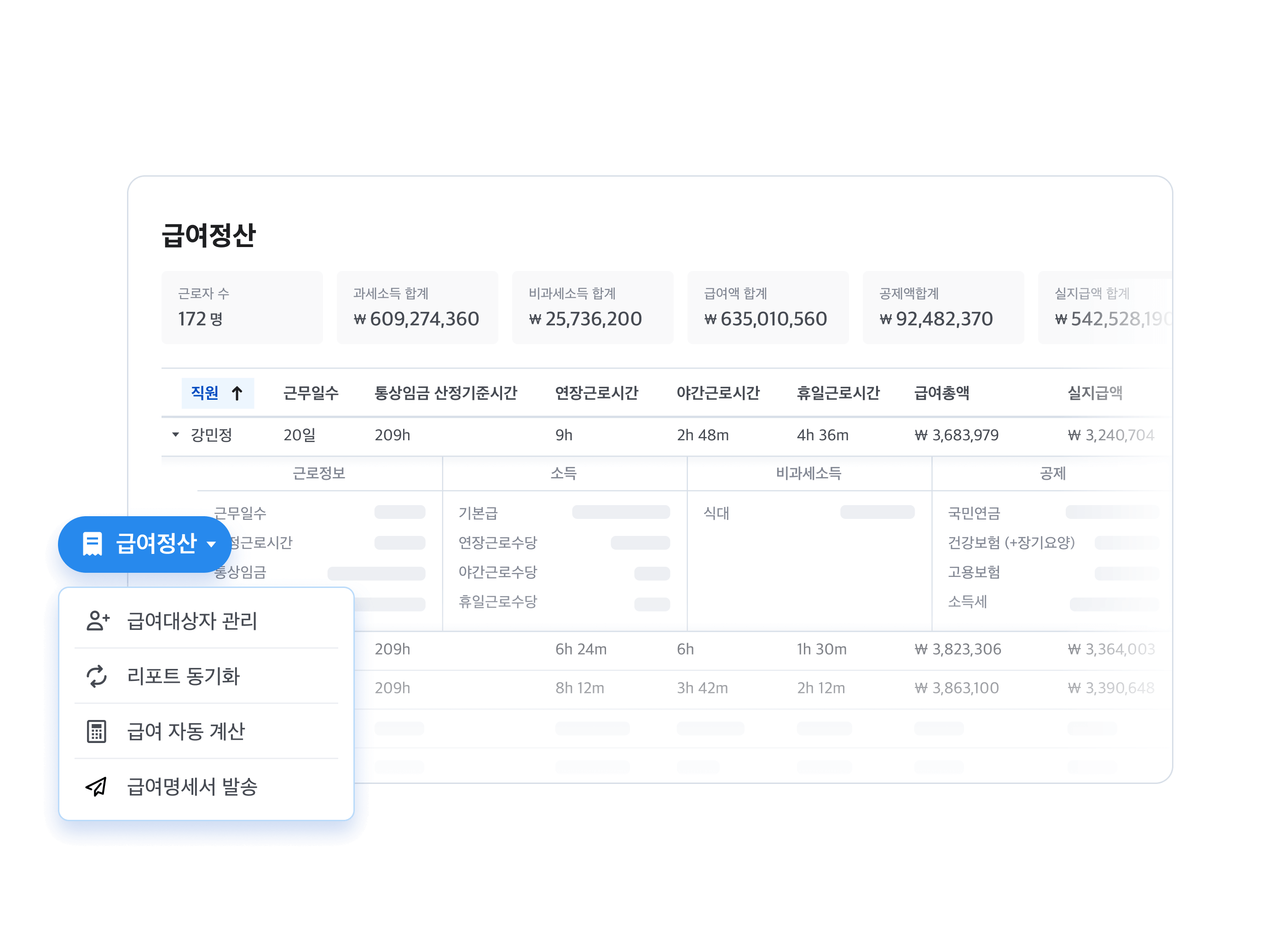 정확한 근태 데이터를 기준으로한 정산 및 급여 연계 구조